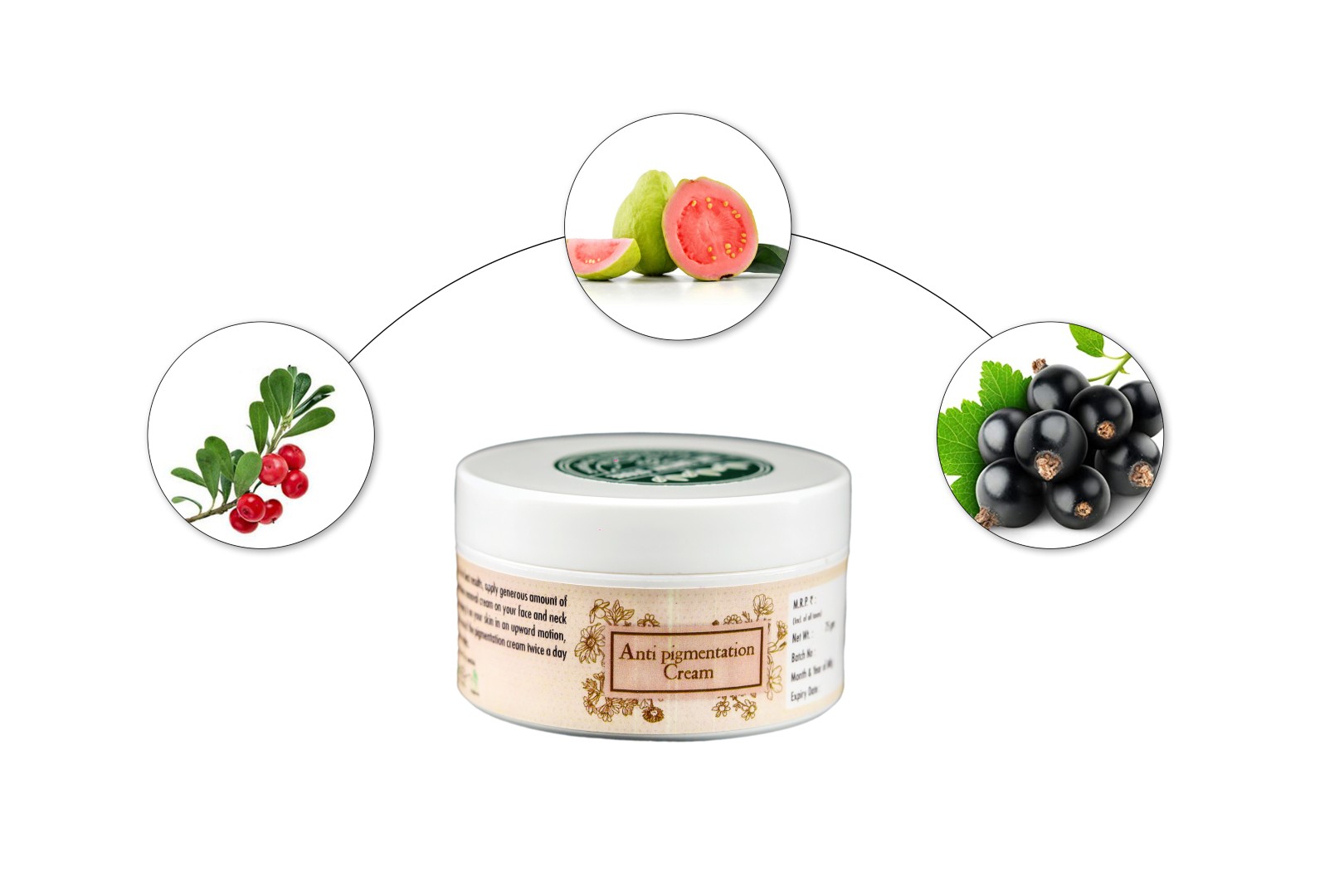 - This organic Anti-pigmentation cream helps in reducing pigmentation, decreasing melanine production, and giving the skin a healthy a healthy glow, it is the best option for a pigmentation removal cream for women to protect the skin from sun damage, prevents wrinkle formation, and provides an even skintone. Organic red guava extract of the pigmentation removal cream helps in reducing acne ,protecting the skin from sun damage, and preventing wrinkles, organic black current seed oil of the anti pigmentation cream helps in moisturizing and improve skin elasticity, reducing wrinkles and dryness, also the organic bearberry extract of pigmentation removal cream helps in the skin glow by reducing pigmentation and melanine production,