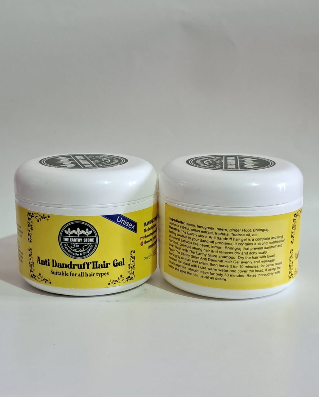 - The Earthy store Anti dandruff hair gel is a complete and long-lasting solution to your dandruff problems, it contains a strong combination of Natural extracts like Neem ,lemon, Bhringraj that prevent dandruff and hair loss, Promote stronghold and relieves dry and itchy scalp,