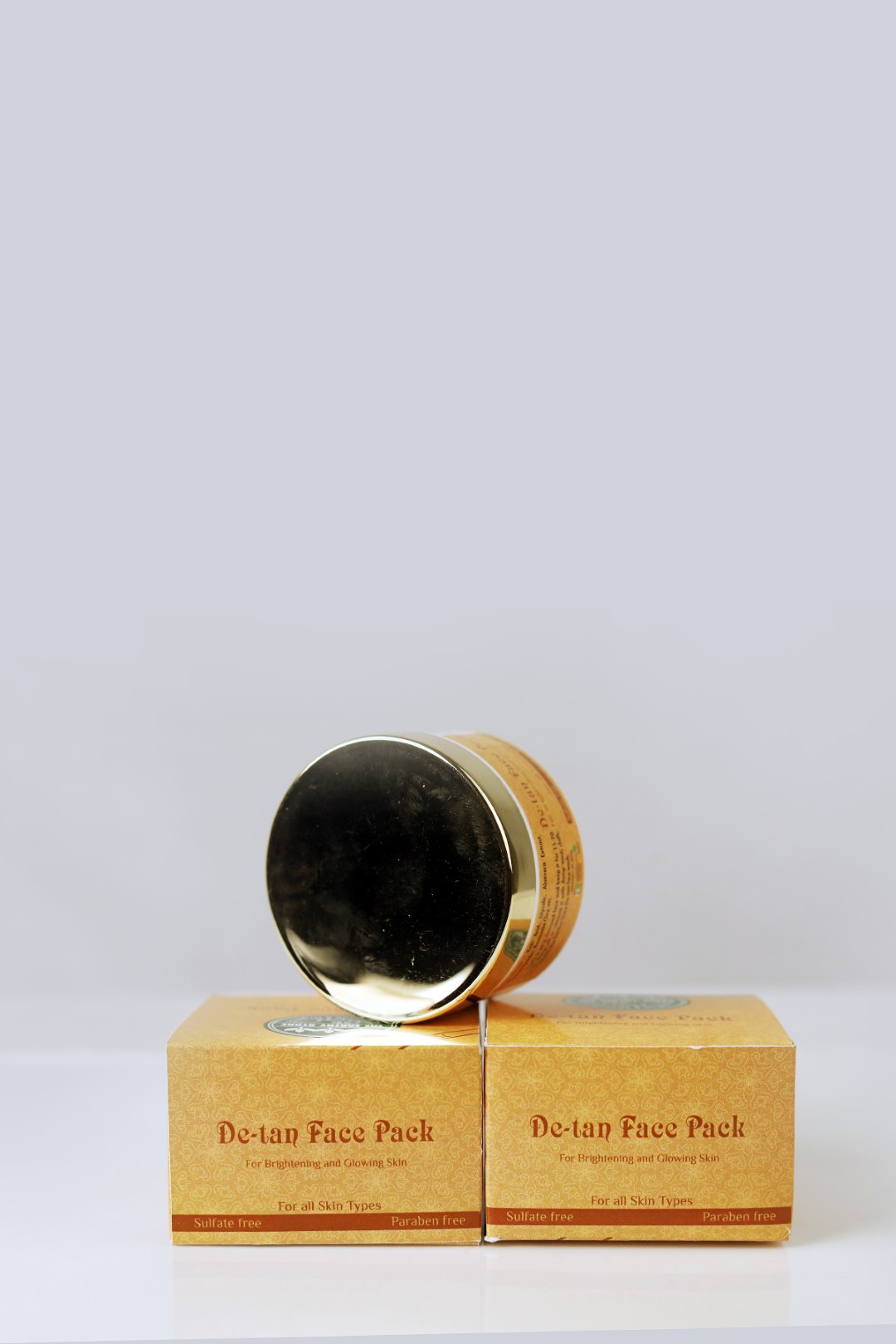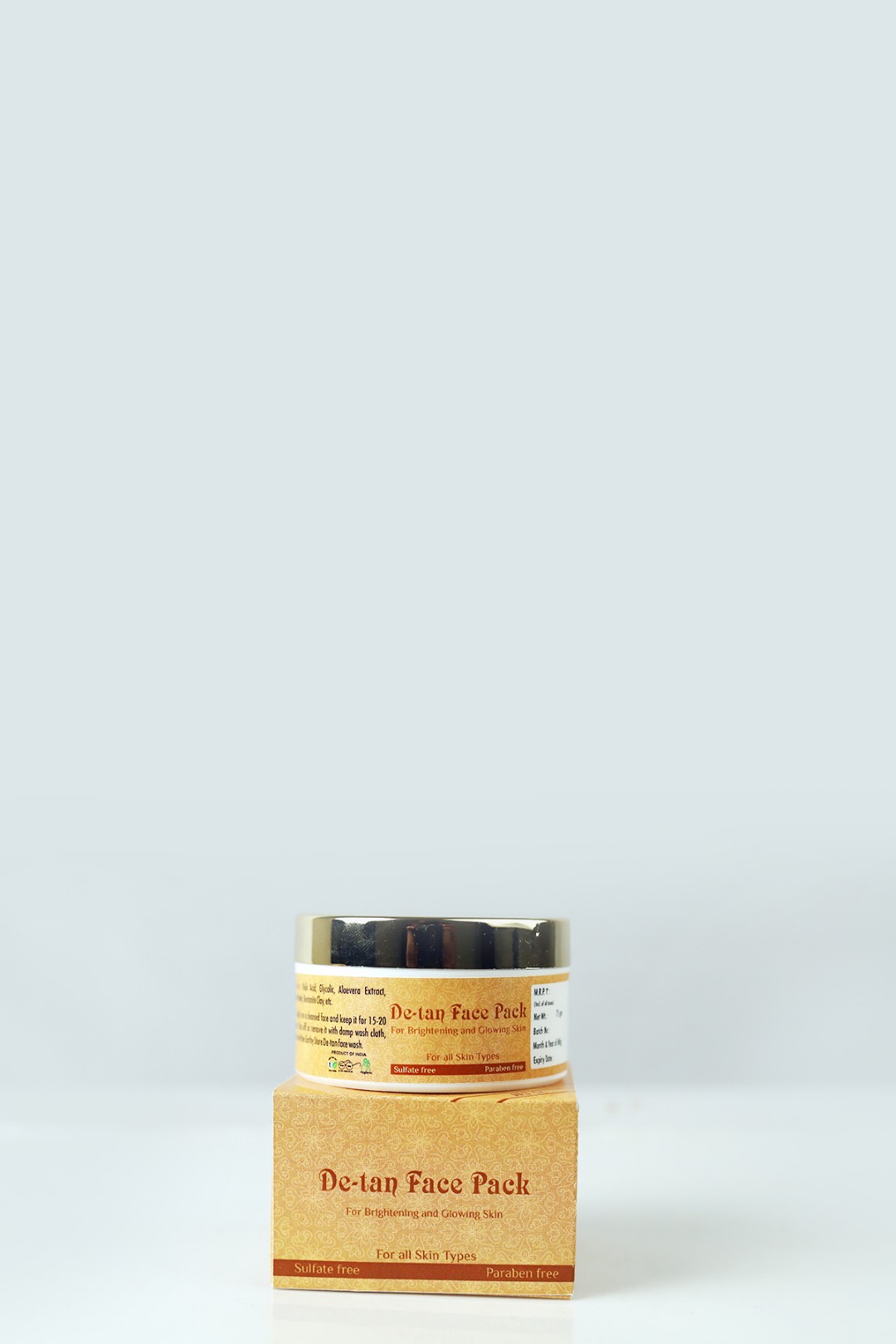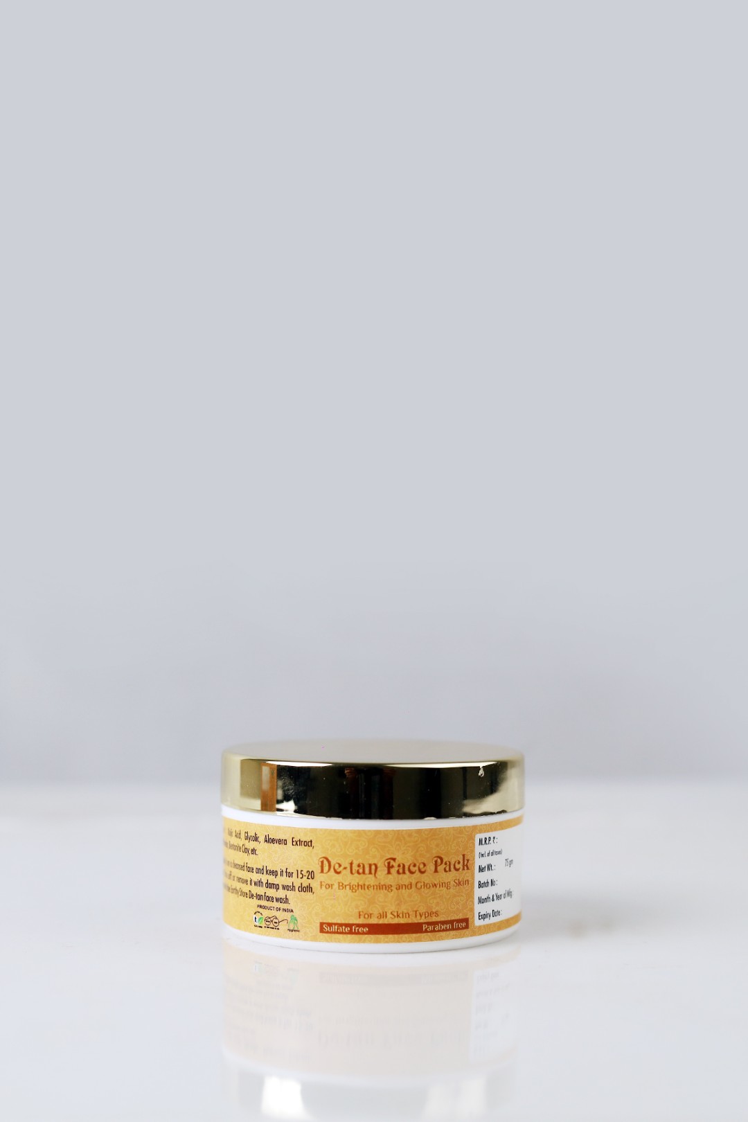 De-tan Face pack for brightening and glowing skin for all skin types, Reduces Tanning and pigmentation, remove dead skin cells & impurities, helps to lighten dark spots & blemishes, makes skin glowing & healthy, improves the overall skin tone.
