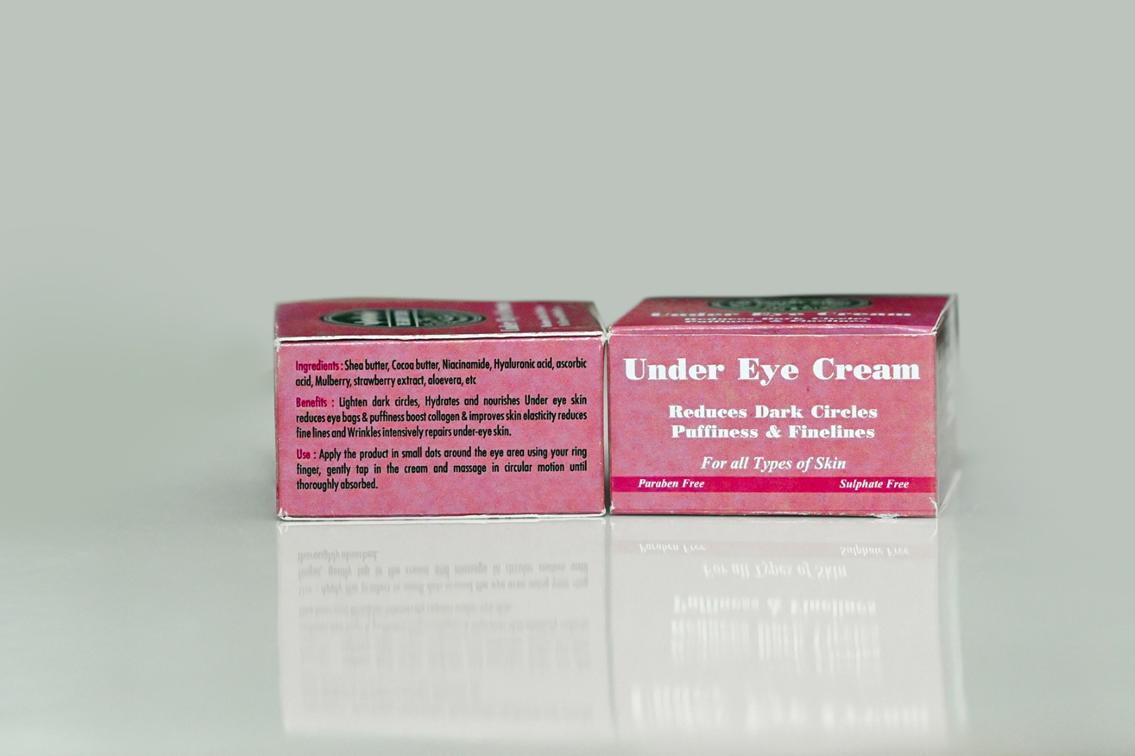 Under eye cream reduces dark circles, puffiness & fine lines, for all Skin types. lighten dark circles, Hydrates and nourishes Under eye skin reduces eye bags & puffiness boost collagen & improves skin elasticity reduces fine lines and Wrinkles intensively repairs under-eye skin.
