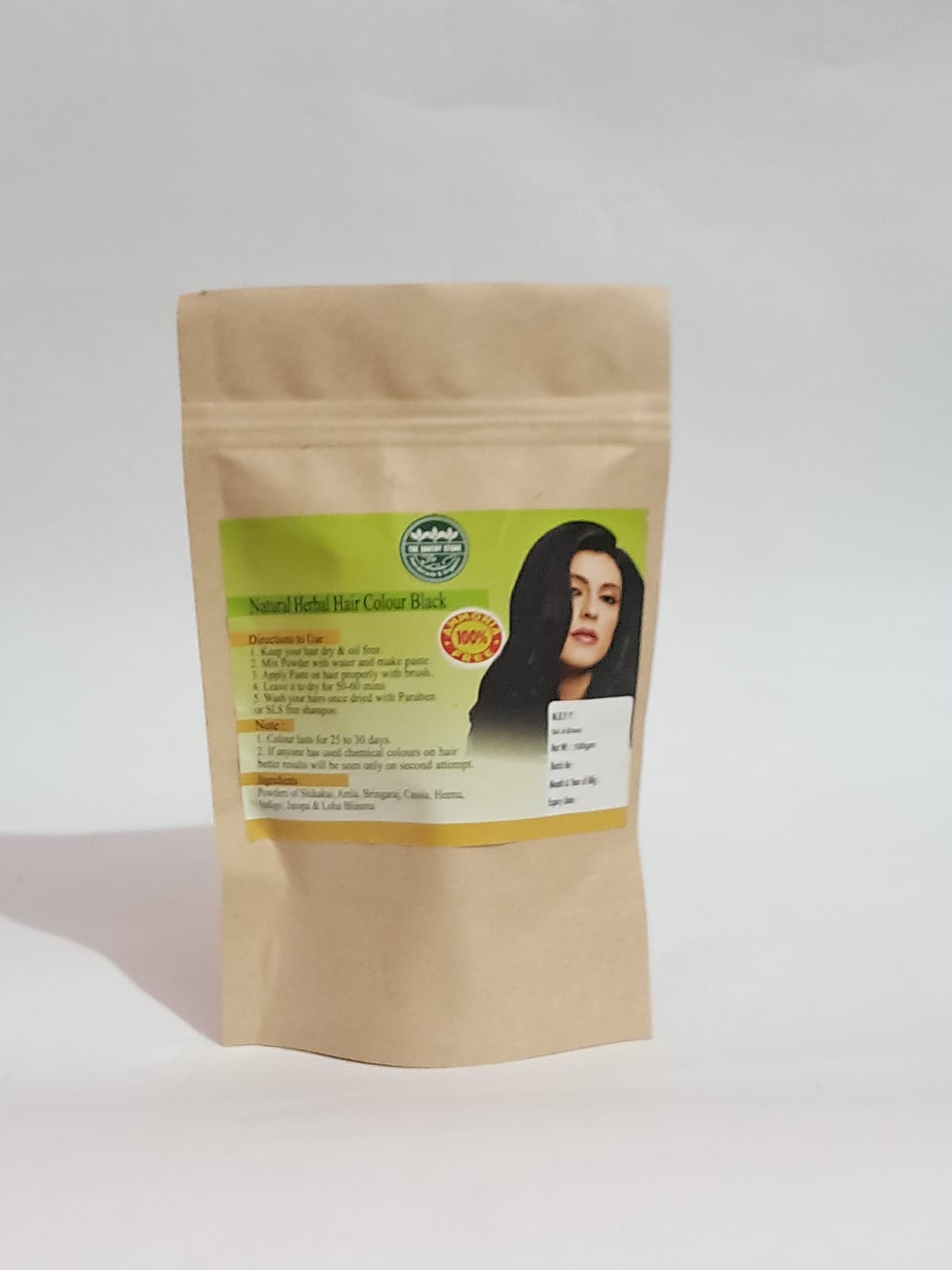 Natural Herbal Hair Colour – Black Enhance your hair naturally with Natural Herbal Hair Colour Black, a gentle, plant-based formula crafted to give rich black colour while caring for your hair. Made with traditional Ayurvedic herbs, this hair colour nourishes the scalp and strengthens hair strands while covering greys effectively. Free from harsh chemicals, this herbal blend helps maintain hair health, shine, and softness, making it suitable for regular use. It provides a natural-looking black shade that blends well with your existing hair colour. Suitable for all hair types