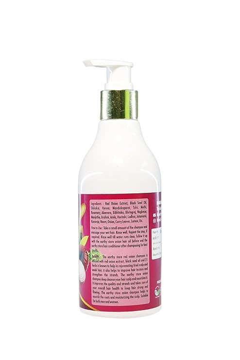 - ake a small amount of shampoo and massage it into your wet hair, then rinse thoroughly. Repeat if needed and continue rinsing until the water runs clear. For best results, apply The Earthy Store Onion Hair Oil before shampooing and follow up with The Earthy Store Hair Conditioner after shampooing.