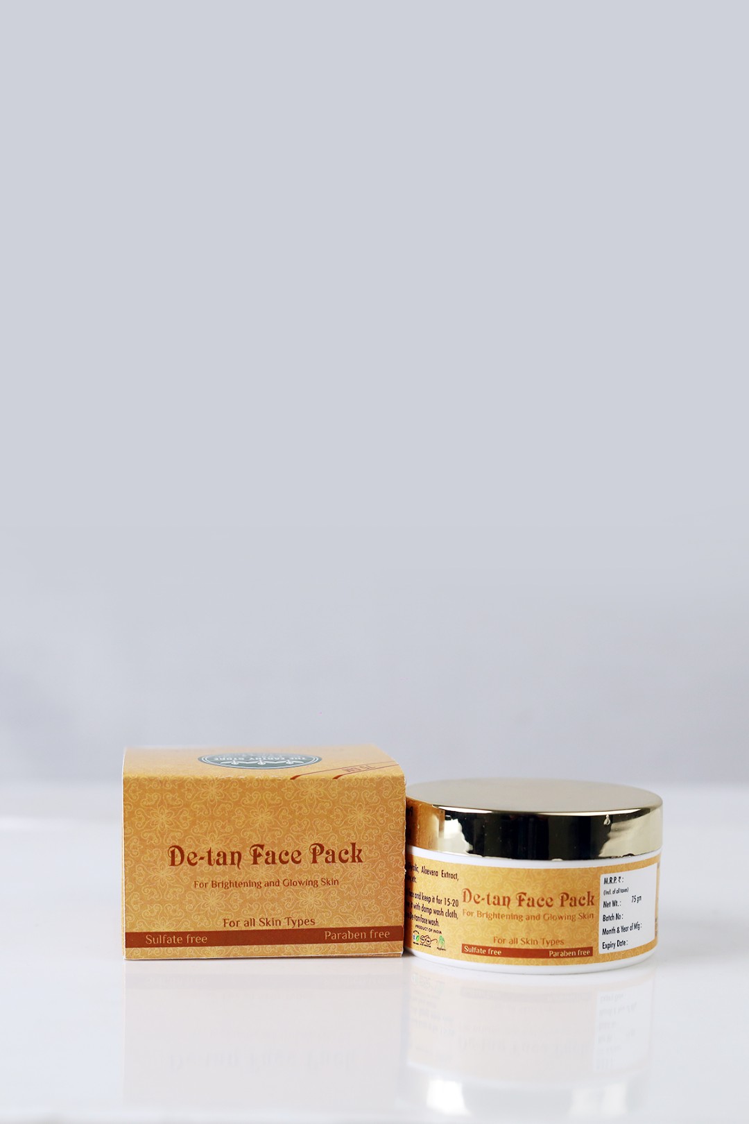 De-tan Face pack for brightening and glowing skin for all skin types, Reduces Tanning and pigmentation, remove dead skin cells & impurities, helps to lighten dark spots & blemishes, makes skin glowing & healthy, improves the overall skin tone.