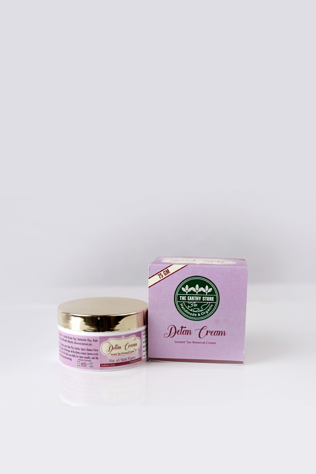 - Cleanse your face the earthy store de - tan face wash, Apply a thin layer of the de - tan cream, leave on to absorb in to the skin, use daily for best results, can be used morning and evening.