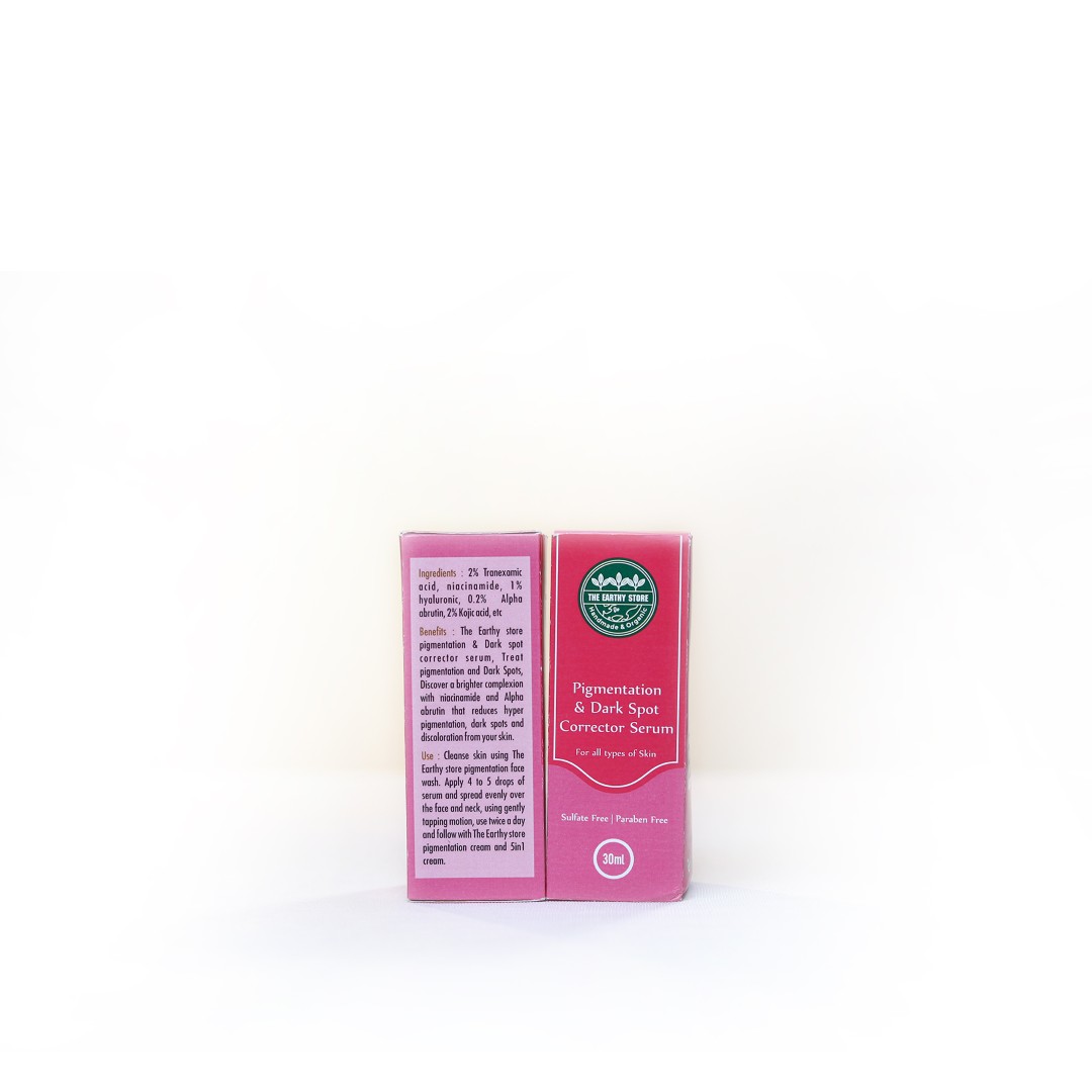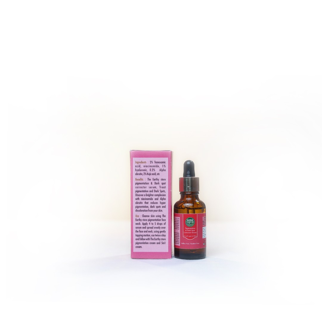 - The Earthy store pigmentation & Dark spot corrector serum, Treat pigmentation and Dark Spots, Discover a brighter complexion with niacinamide and Alpha arbutin that reduces hyper pigmentation, dark spots and discoloration from your skin.